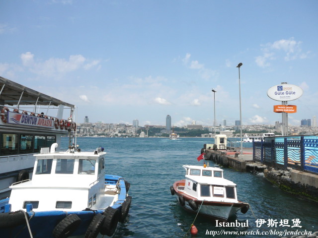 伊斯坦堡被博斯普魯斯海峽一分為二,一邊是歐洲,對岸則是亞洲,歐洲區更被金角灣分為新、舊城區。橫跨在歐亞兩邊的橋樑,只有博斯普魯斯大橋和更北邊的征服者穆罕默德大橋,想要跨越歐亞洲,除了走這兩條橋外,還可以由海上搭船穿越海峽,伊斯坦堡的海岸有多處碼頭,每天有不少船班往返在各處碼頭間,這些海上渡輪除了接駁交通外,也兼顧觀光性質,每天特地來坐船觀光的遊客不計其數。