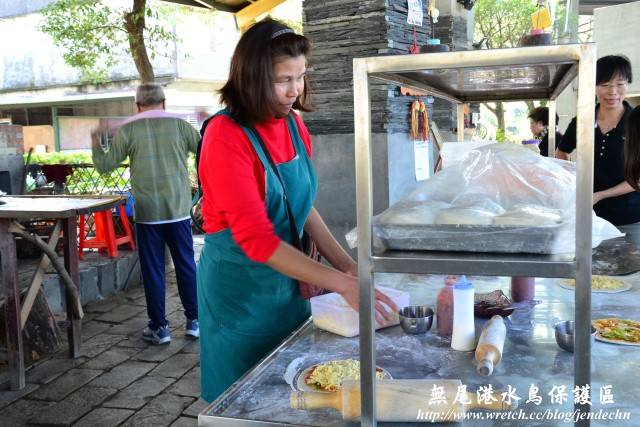 從台北走國道五號,下了蘇澳終點出口,左轉直走一小段路,右轉入台二線往蘇澳方向走,在蘭陽隧道之前,看到「岳明國小」指標後,跟著指標左轉直走,到達港邊社區窯烤披薩前的停車場,將車子停好,準備徒步賞鳥。一停好車,就看到旁邊的柴燒窯烤披薩店正準備開張,這家披薩店只在假日的11點~14點營業,可以自己DIY現做現烤,口感味道還不錯,無尾港附近沒什麼餐廳,我們只帶了幾個麵包,還是先在這裏買個熱騰騰的披薩再上路!