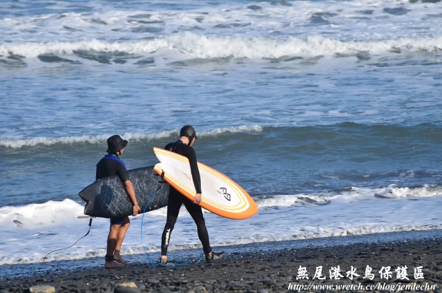 沿原路走回「賞鳥平台」,再往下走「盤根隧道」可以到達海邊,海邊有不少衝浪者,正在奮力的與海浪搏鬥。大馬路旁有處「泡泡湧泉」,由這裏走「漁人步道」,步道也幾乎都是穿梭在林木中,曬不到太陽,漁人步道有幾條叉路,在林中蜿蜒迴繞,有條岔路可以走到海邊,也有岔路可接到「盤根隧道」,彈性很大,想怎麼走,就看各人喜好了!