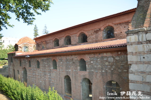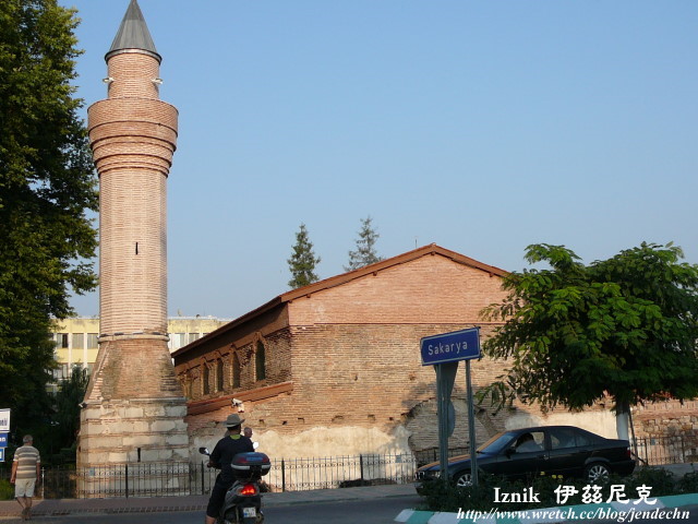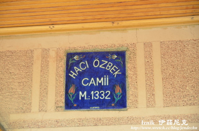 伊茲尼克鎮上有幾座美麗的清真寺,其中最顯目的Ayasofya剛好位在小鎮中心點,遊客中心也在旁邊,這裏曾是拜占庭教堂,後來才改成清真寺,後面的浴場目前仍在使用中,是現存土耳其最古老的浴場之一,Ayasofya旁還有一個磁磚磚窯遺址,但不對外開放。由Ayasofya往東走,大約5分鐘的路程,就會看到Hacɪ őzbek清真寺,這座看起來很不起眼的清真寺,來頭卻不小,它是現存鄂圖曼王朝最古老的清真寺,也是最早使用圓頂造型的清真寺。