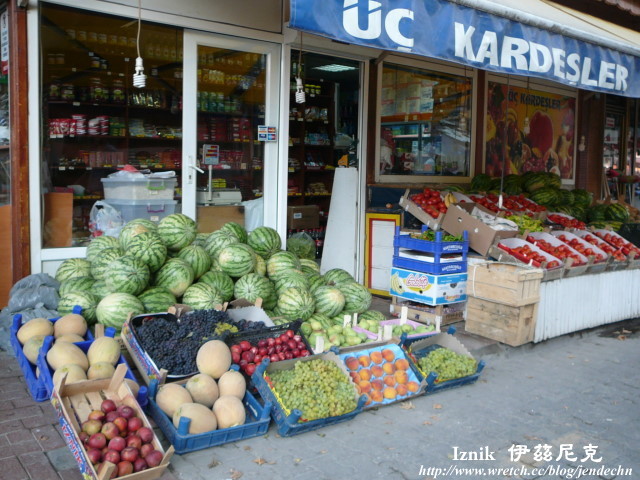 行前看到旅遊書上介紹的伊茲尼克,是個保存完整的幽靜古城,地圖上還畫上古城外牆,因此在腦海中刻畫了一個像番紅花城般的古城幻景,實際來到後,腦中的幻景破滅,失落感頗大,古城的建築大都已翻新,外牆也傾頹,感覺不出書上所描繪的古城模樣了。伊茲尼克的磁磚產業已移轉到別處,當年的榮景盛況不再,現在的伊茲尼克成了一個幽靜的湖濱度假小鎮,最美的景色,是伊茲尼克湖畔的黃昏!