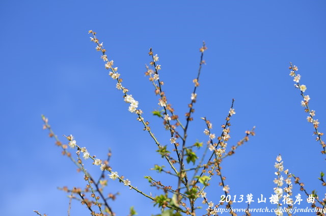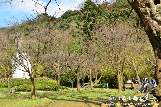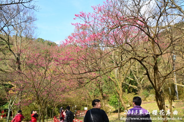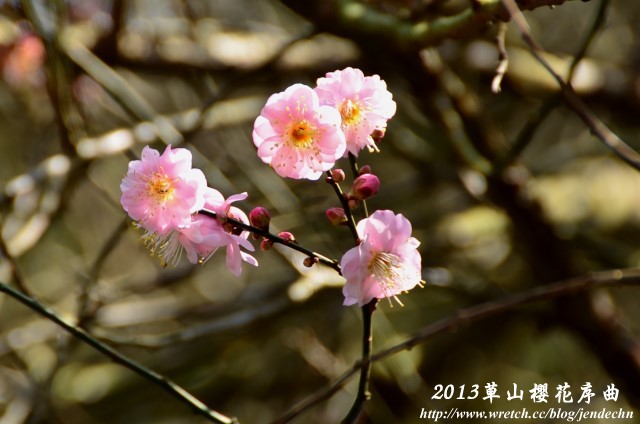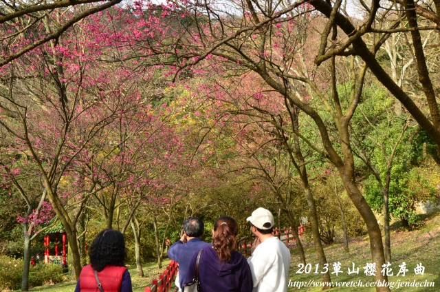 回到廣場上,瞧見右側的山櫻開了快一整排,轉進王陽明銅像繼續往上,凋零的梅花,坐落在旁邊,遊客幾乎視而不見,我還是來個雪中送炭,讓梅花感受一下人性的溫暖。再往前走幾步,到了公園的高處,往下一看,處處有櫻花綻放,超過我的預期,讓今年的賞櫻有個美麗的序曲!