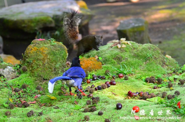 (42) 藍鵲看到松鼠靠近,馬上上前驅趕。