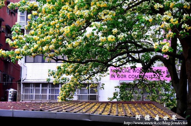 離開台大校園,往真理堂旁的新生南路三段86巷走,還沒走到溫州公園,遠遠就看到一大群人聚在那顆大魚木下,有人還一邊拍照一邊驚呼連連,連我倆認識這顆魚木已經不少年了,走到這裏還是被那壯觀的花叢所吸引,更何況是第一次看到的遊客,這顆高達幾層樓高的大魚木,讓溫州公園增色不少!