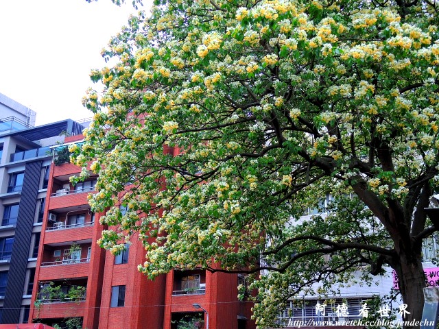 台灣的魚木不多見,大台北地區也只有幾顆,其中以溫州公園旁的這顆名氣最旺,體型也最壯碩,慕名而來的遊客不在少數!魚木在每年的四月開花,花期不短,有一個半月,初期的花色偏白,會逐漸轉黃色,末期甚至有點淡紫色,盛開時的魚木茂盛得讓人驚艷,密密麻麻的花叢,簡直像炸開般爆滿整株樹!